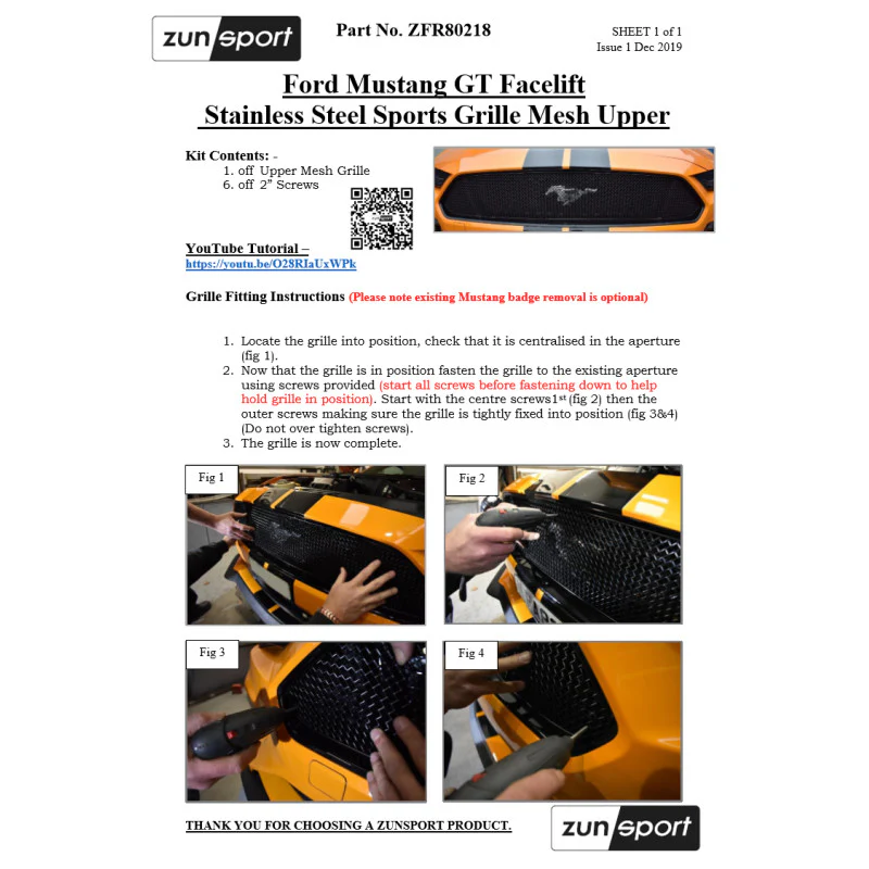 Fitting a Zunsport Upper Grille is one way to guarantee an enhanced appearance as well as protection from the debris and leaves so commonly found on roads.
